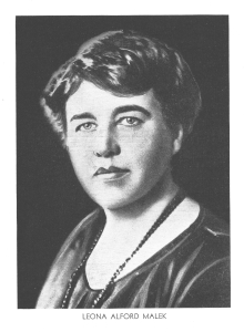Leona Alford Krag Malek, pioneer journalist, nationally recognized home economist, radio personality, actress and clubwoman, was also known as Jean Prescott Adams, an authority of domestic economy and to thousands of newspaper readers as “Prudence Penny.” Malek served as the nineteenth president of the Illinois Woman’s Press Association from 1929 to 1935. Born in Illinois …