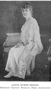 Annie Myers Sergel’s spirit of harmony and cooperation garnered her respect and sincere affection within the Illinois Woman’s Press Association. On many occasions, Annie, along with her husband Charles, delighted in hosting soirees and dinner parties for IWPA events in their Chicago home. Such was the reputation of the Sergel’s as entertainers that invitations to …